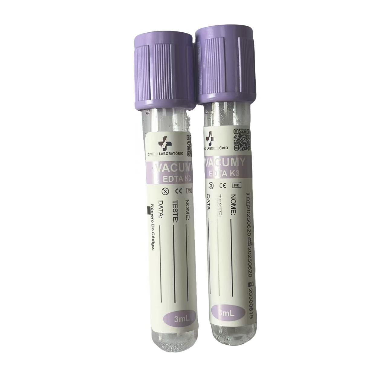| EDTA Tube | Purple | EDTA K2 K3 | Glass/PET | 1-10ml | 13*75mm 13*100mm 16*100mm |
